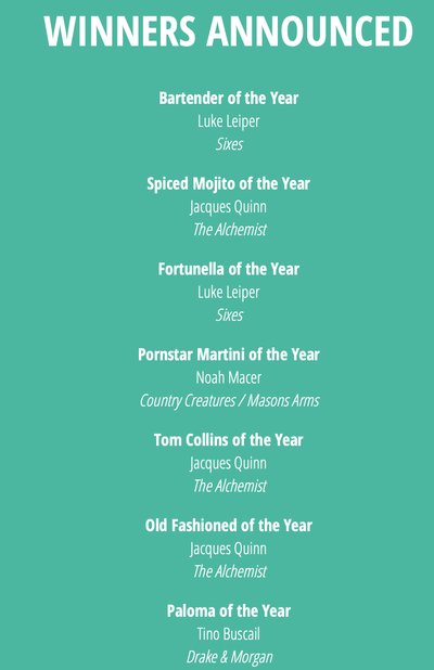 Jacques Quinn of The Alchemist was a standout throughout the day, taking home multiple category wins including Spiced Mojito, Old Fashioned, and Tom Collins of the Year. His technical precision and flair for presentation made him one to watch from the start.